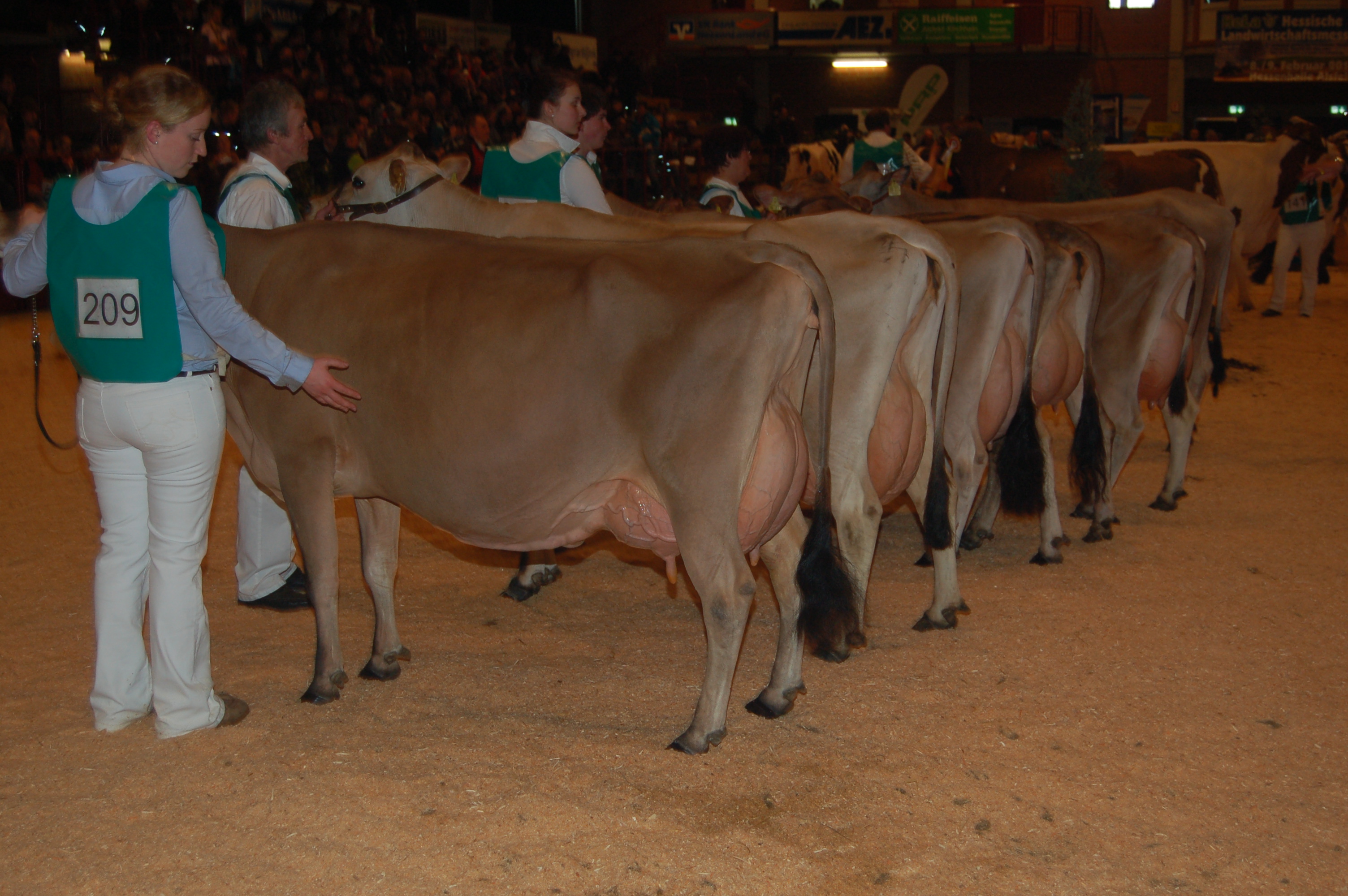| | | Jerseyschau in Alsfeld | 27.01.2015 | | | Auch in diesem Jahr wird die Schau Hessens Zukunft in Alsfeld wieder um eine kleine aber feine Jerseyschau bereichert. Dabei darf sich der interessierte Jerseyzüchter auf eine spannende Konkurrenz freuen, denn in diesem Jahr wird die internationale Siegerkuh Kendra vom Betrieb Uhrig nicht am Start sein. Trotzdessen darf natürlich eine Konkurrenz auf höchstem Niveau erwartet werden. Mit insgesamt elf Anmeldungen aus sieben Betrieben werden in diesem Jahr erfreulicherweise wieder mehr Züchter mit ihren Jerseykühen an den Start gehen. Diejenigen, die sich die Jerseyschau nicht entgehen lassen wollen, sollten sich den Termin der Hessen Zukunft am Samstag, den 7. Februar 2015 ab 9:30 Uhr in Alsfeld vormerken.