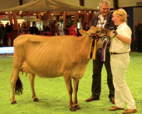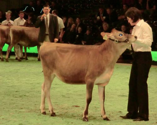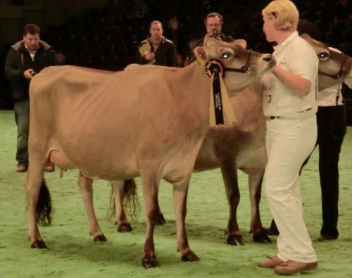 Der Jerseywettbewerb wurde von dem bekannten amerikanischen Preisrichter Mark Rueth (Rosedale Farms) gerichtet. Andrea Uhrig, Mitglied im VDJ, konnte dabei einen großartigen Erfolg erzielen. Mit der Signature-Tochter Avonlea Kendra feierte sie zunächst den Klassensieg bei den Jungkühen, um dann bei der Auswahl zur Gesamtsiegerkuh als Drittplatzierte sogar die Auszeichung "Honorable Mention" zu erhalten! Überdies wählte Mark Rueth Kendra zur zweitbesten Euterkuh der Schau. Herzlichen Glückwunsch!